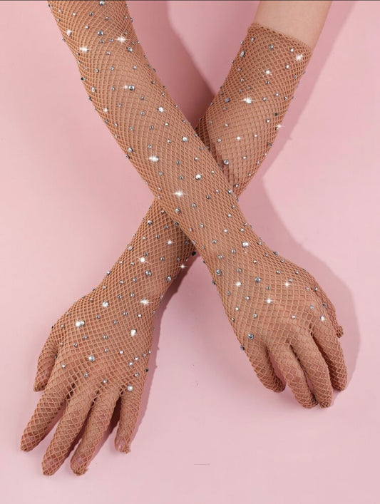 Guantes de malla con diamamantes de imitacion