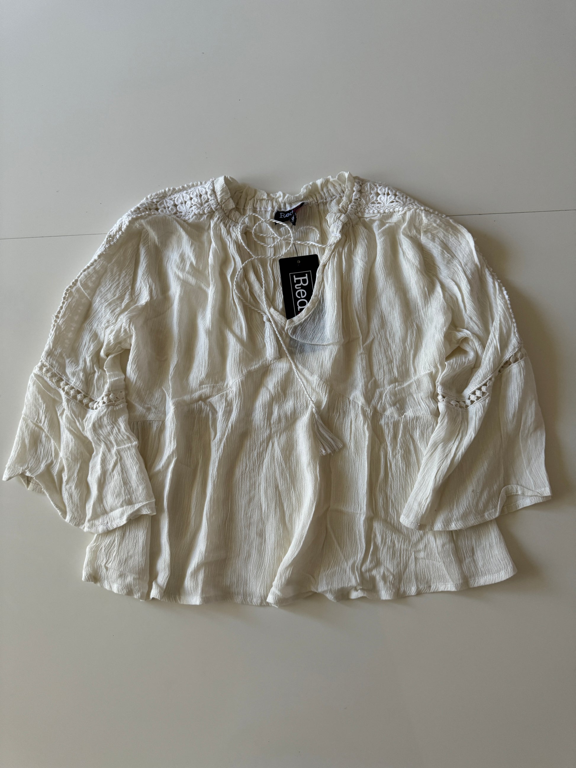 Blusa campirana beige, Talla S/28, Mujer