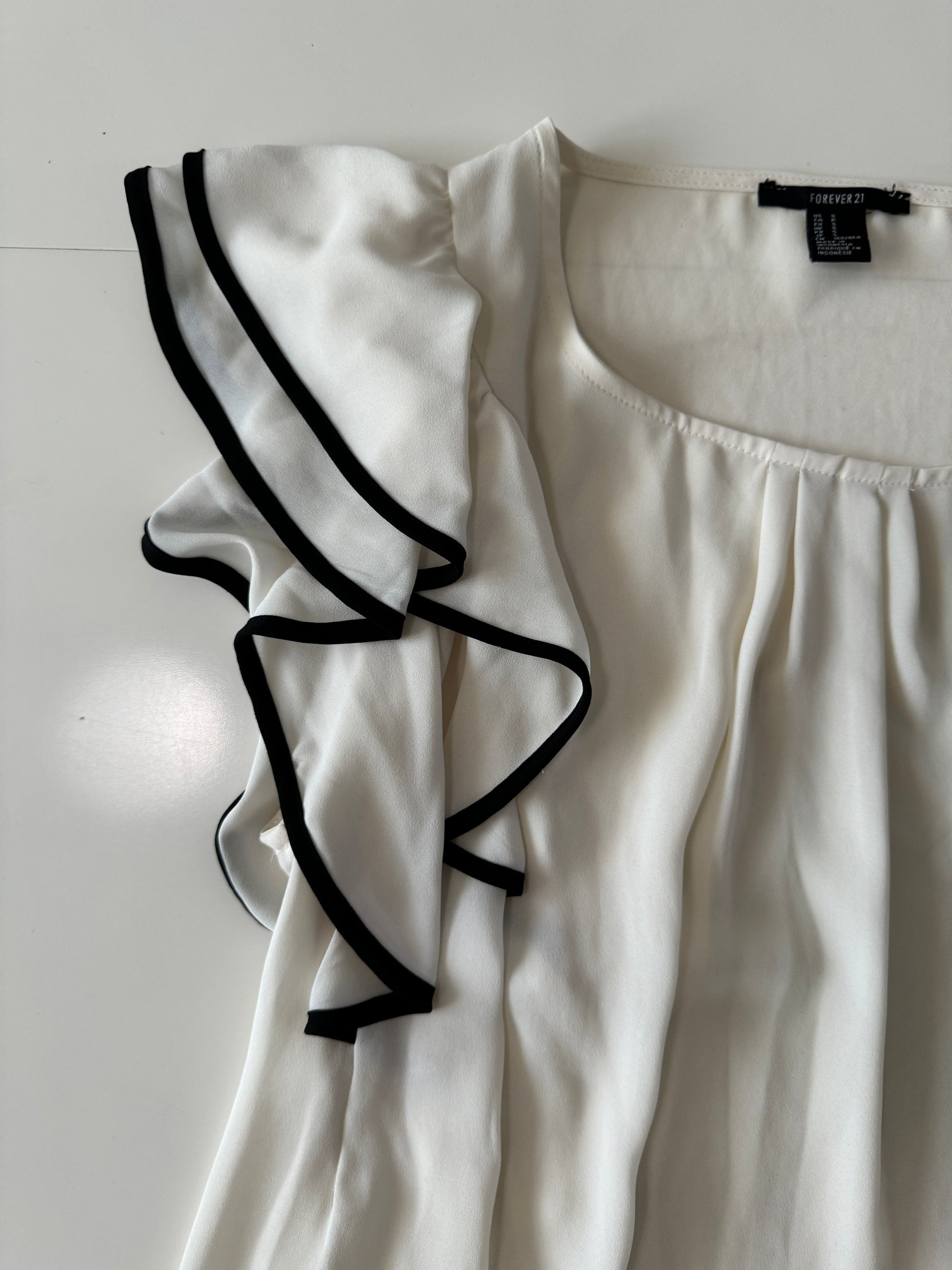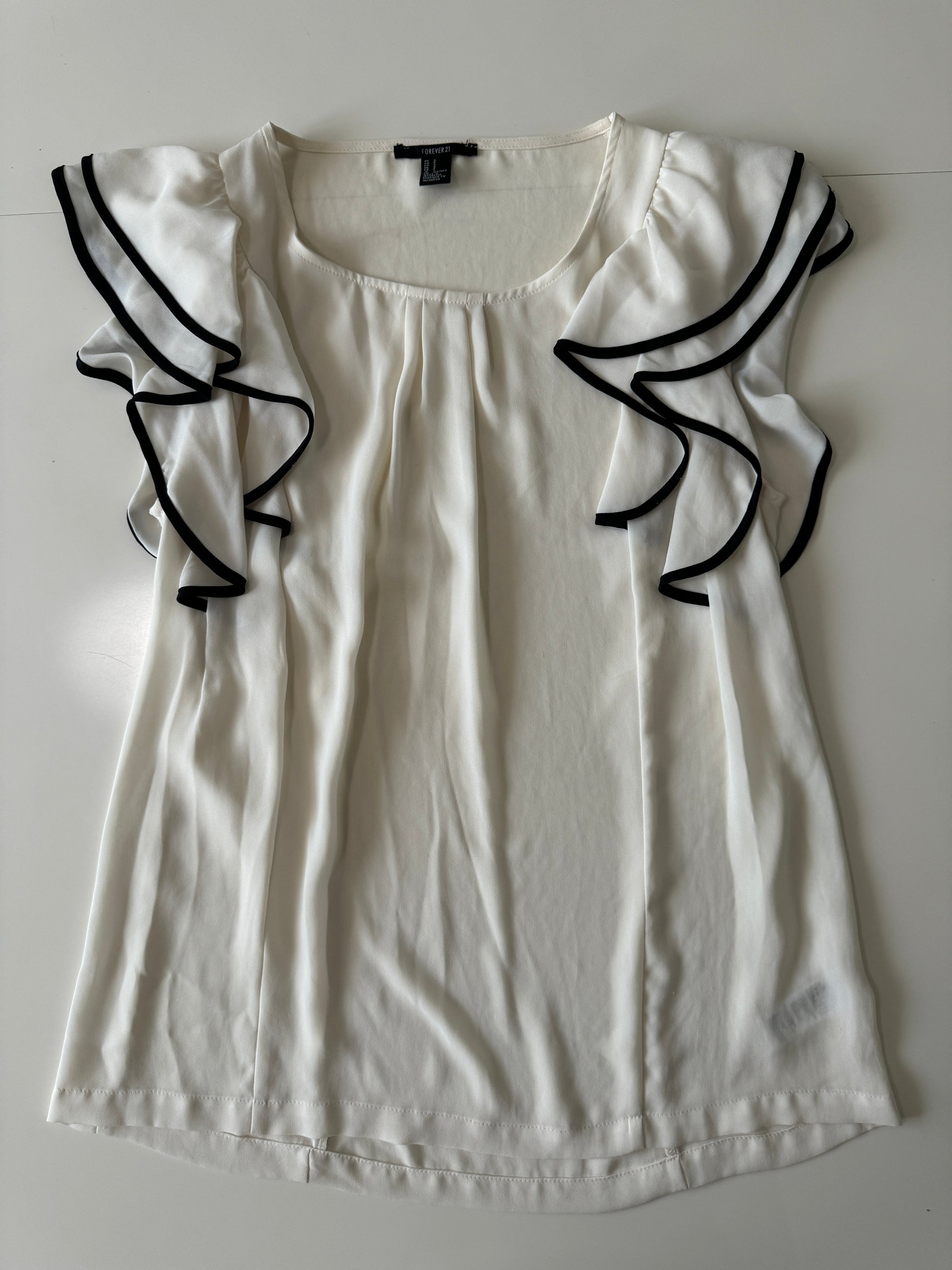 Blusa con ribetes negros, Talla S, Mujer