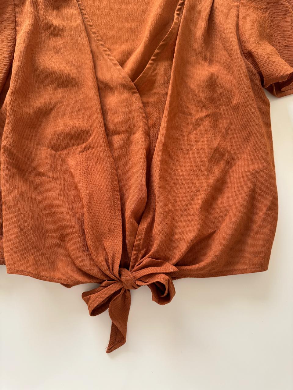Blusa cruzada cafe, Talla S, Mujer