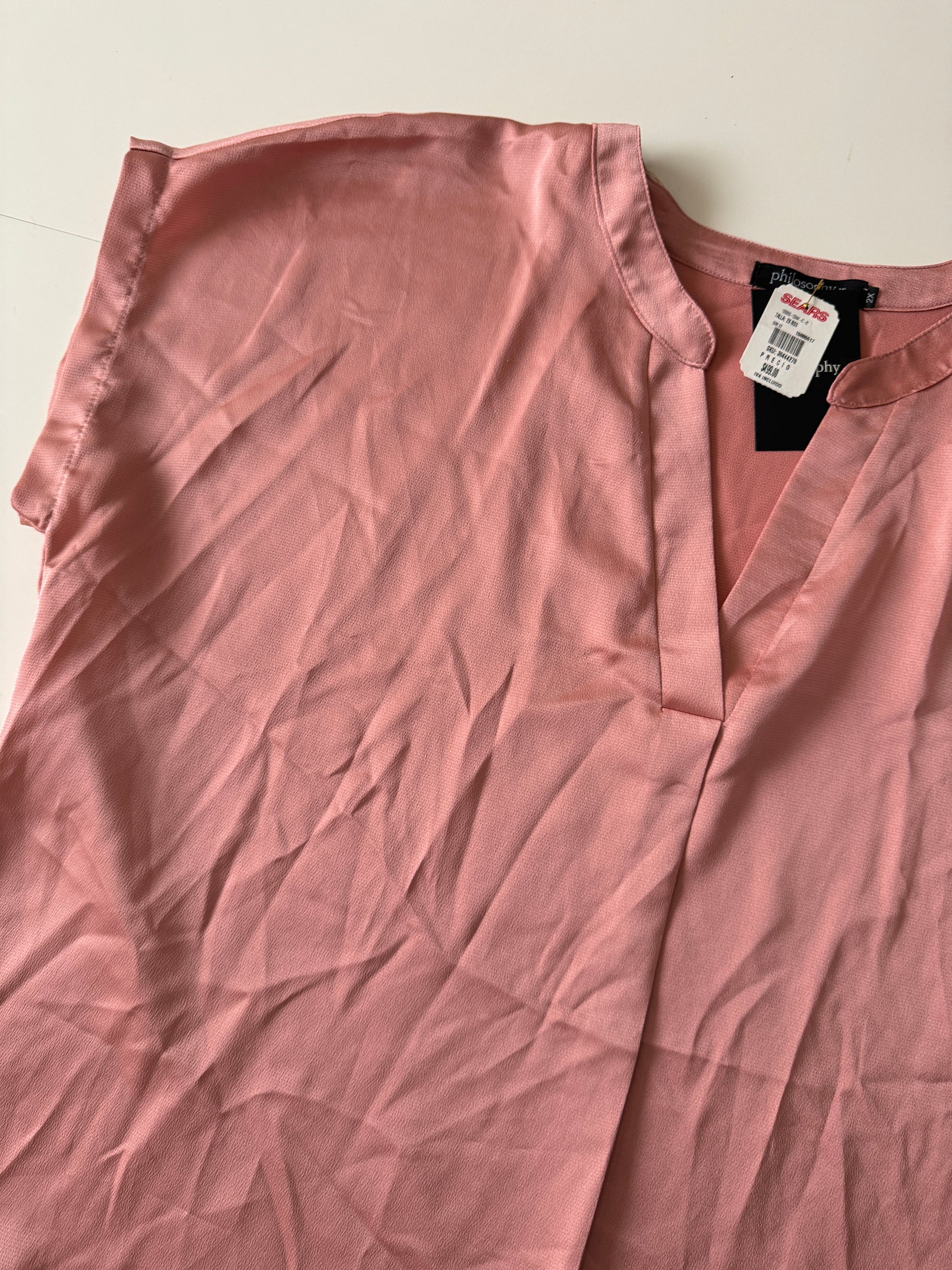 Blusa satinada rosa, Talla 2XL, Mujer