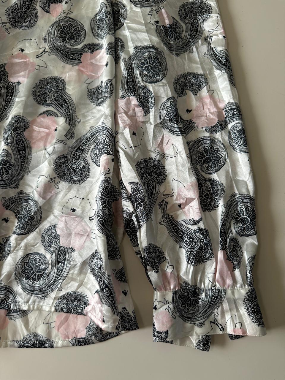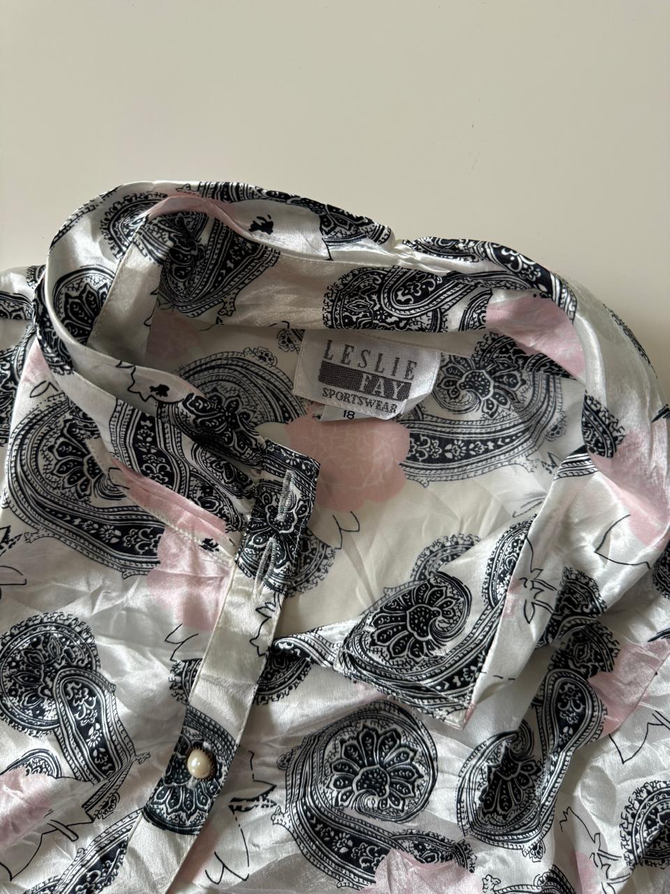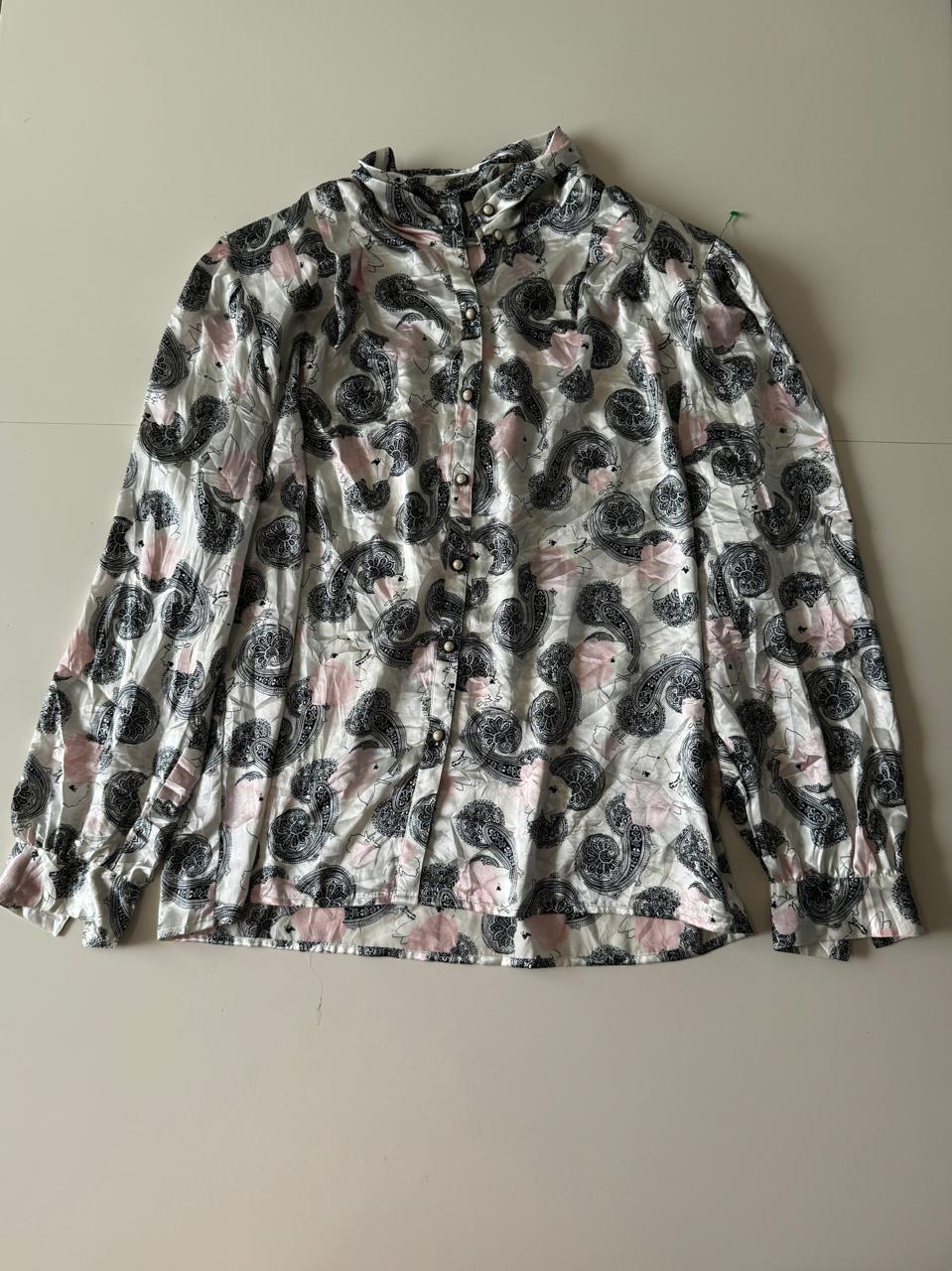 Camisa de saten, cuello alto, Talla 18, L, Mujer