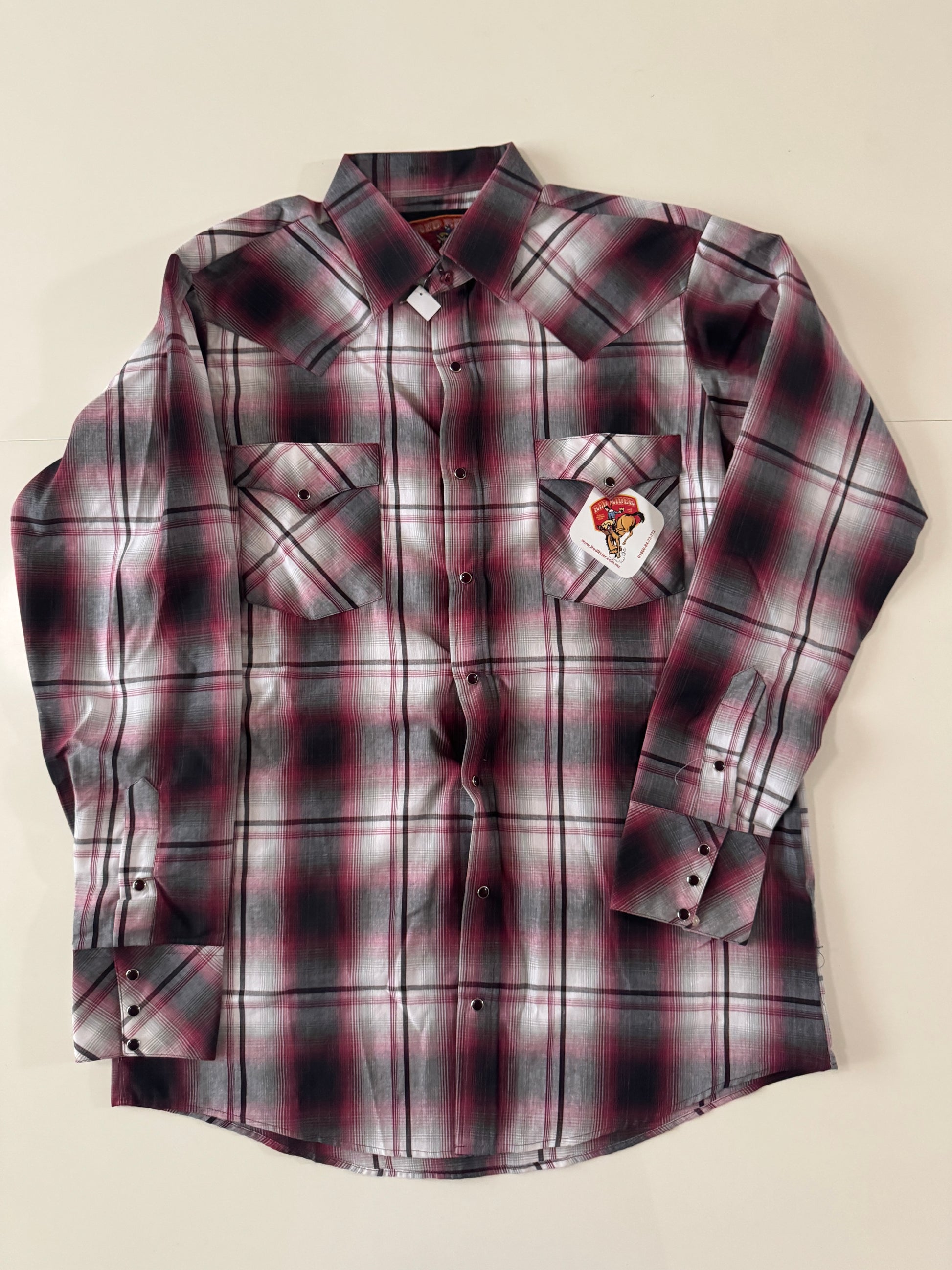 Camisa vaquera roja con gris, Talla L, Hombre, Red Rider