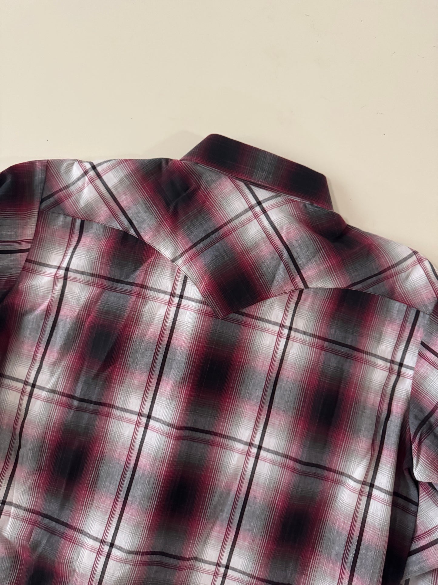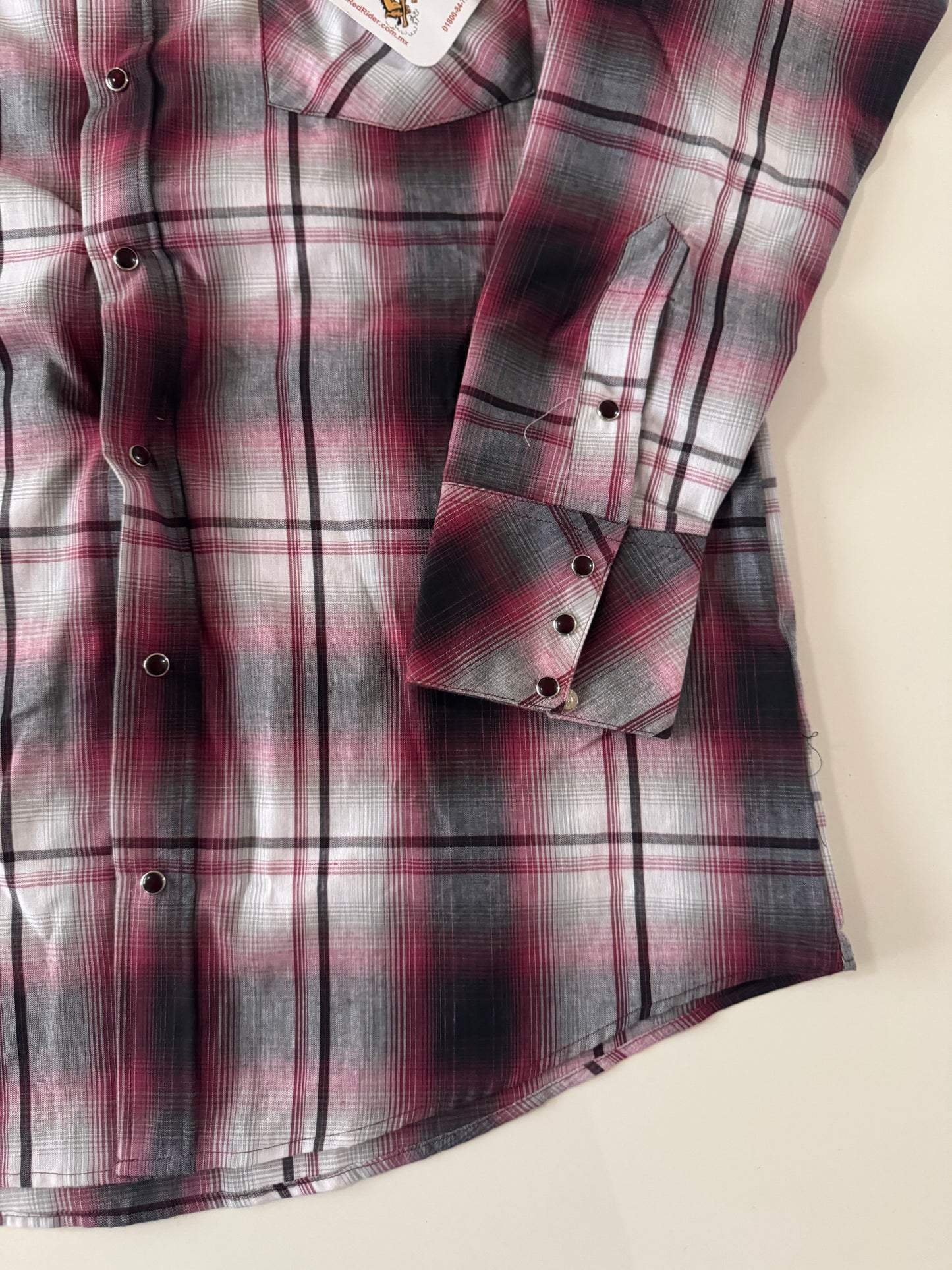 Camisa vaquera roja con gris