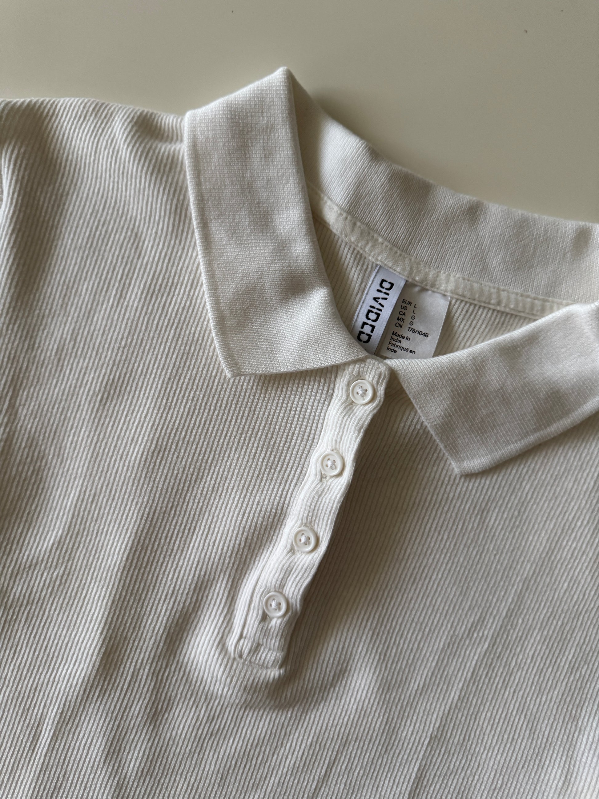 Crop blanco tejido, estilo polo, Talla L, Divided H&M, Mujer