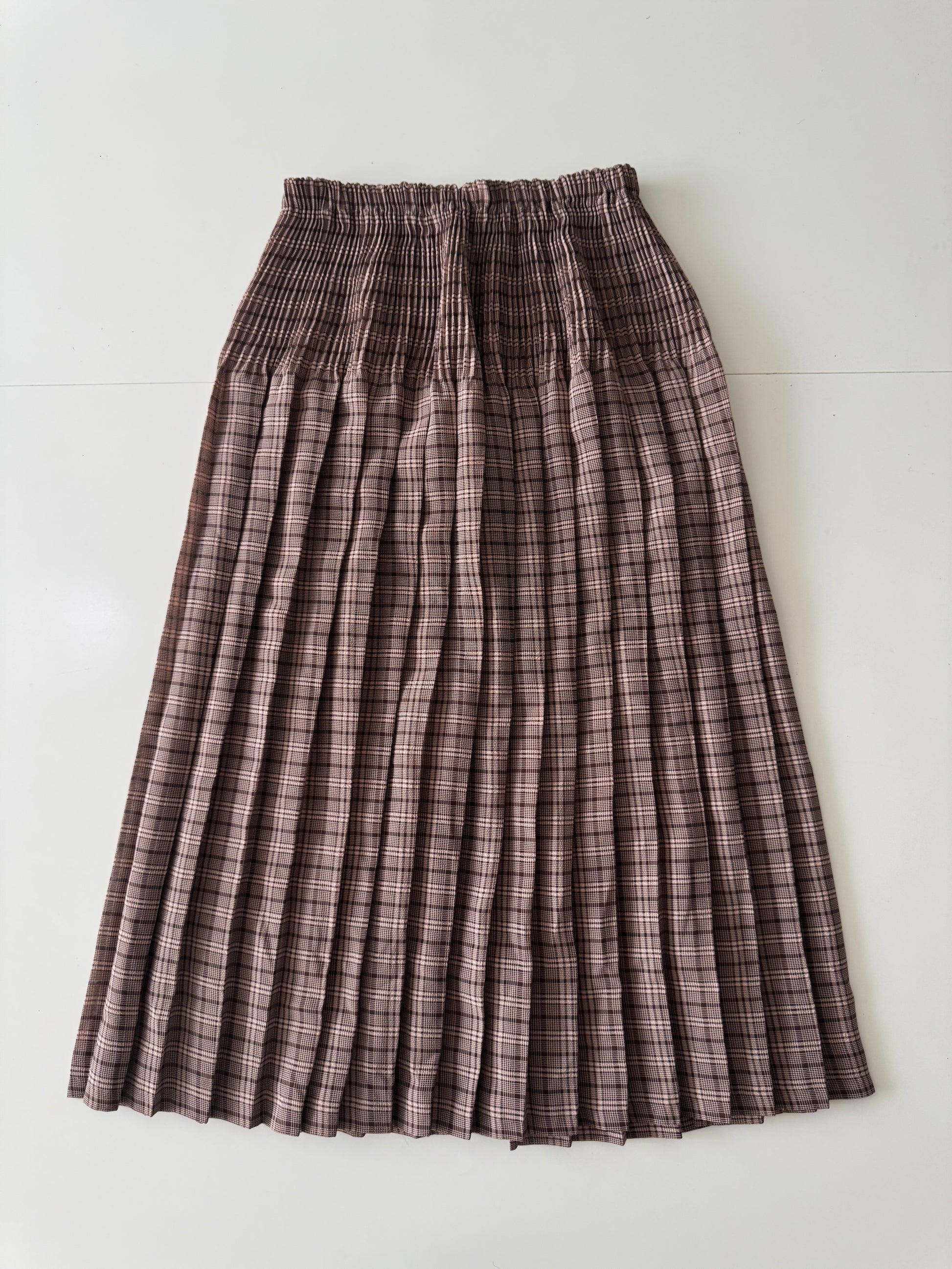 Falda tabloneada cafe, Talla S, Mujer