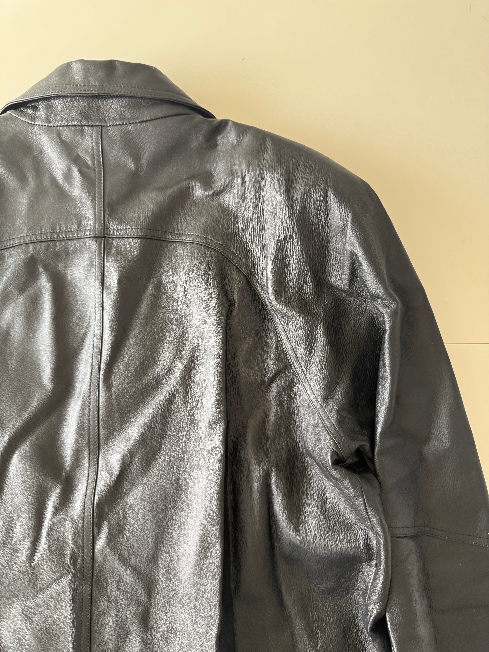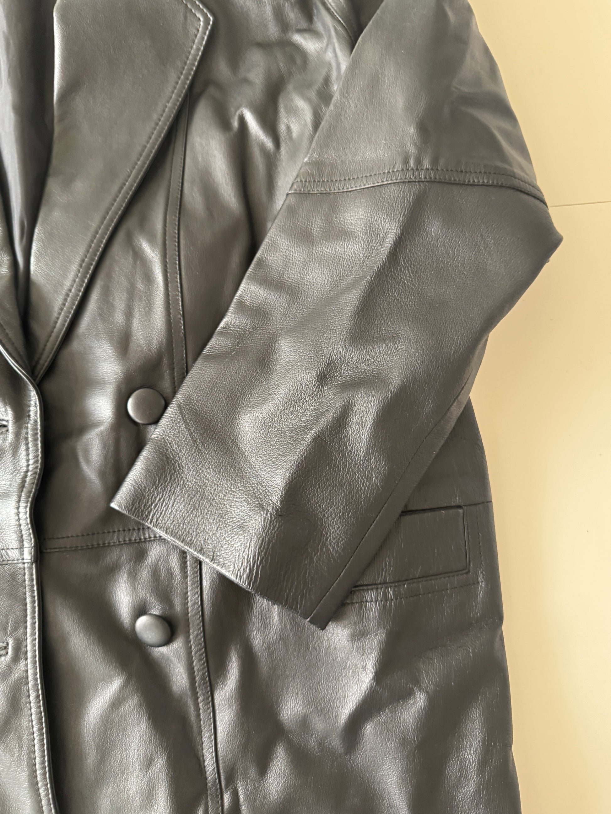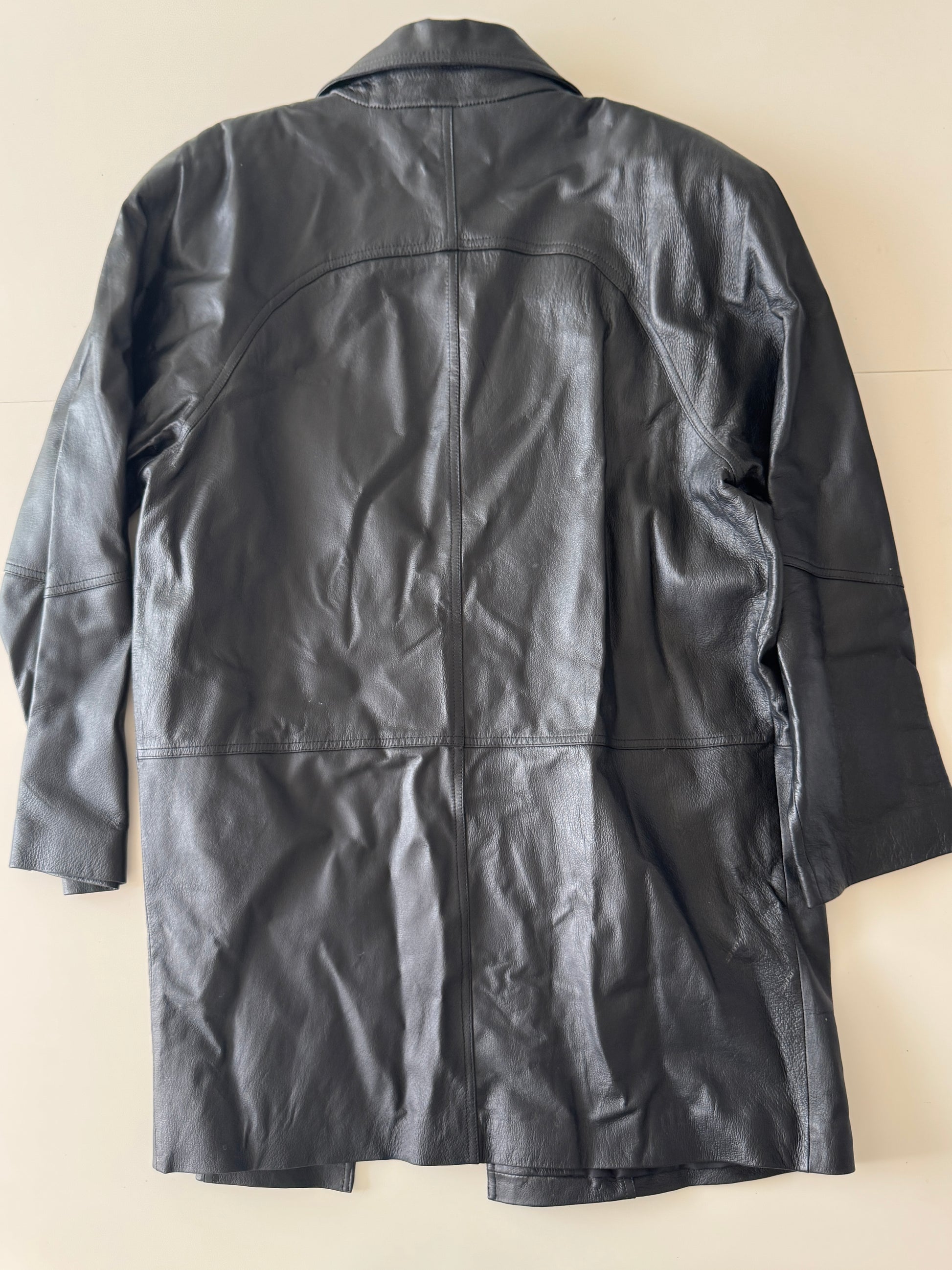 Gabardina negra de piel, Talla L, Mujer, Tribeca Studio