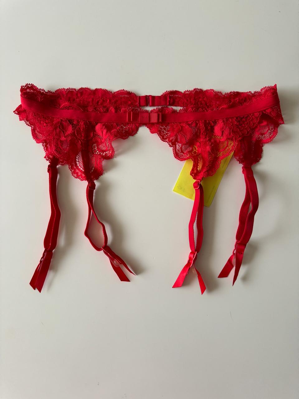 Liguero rojo de encaje, Talla XS, Mujer