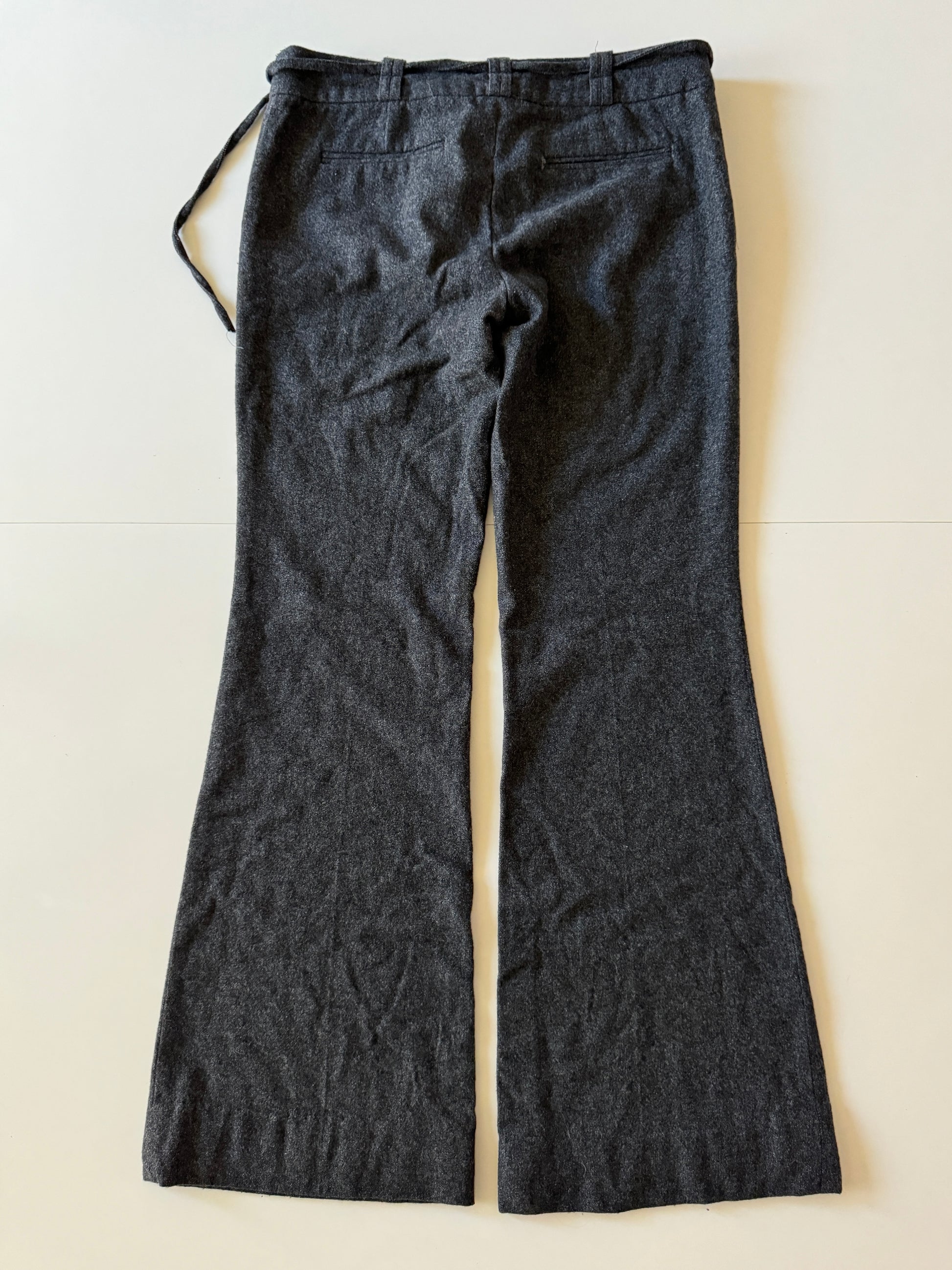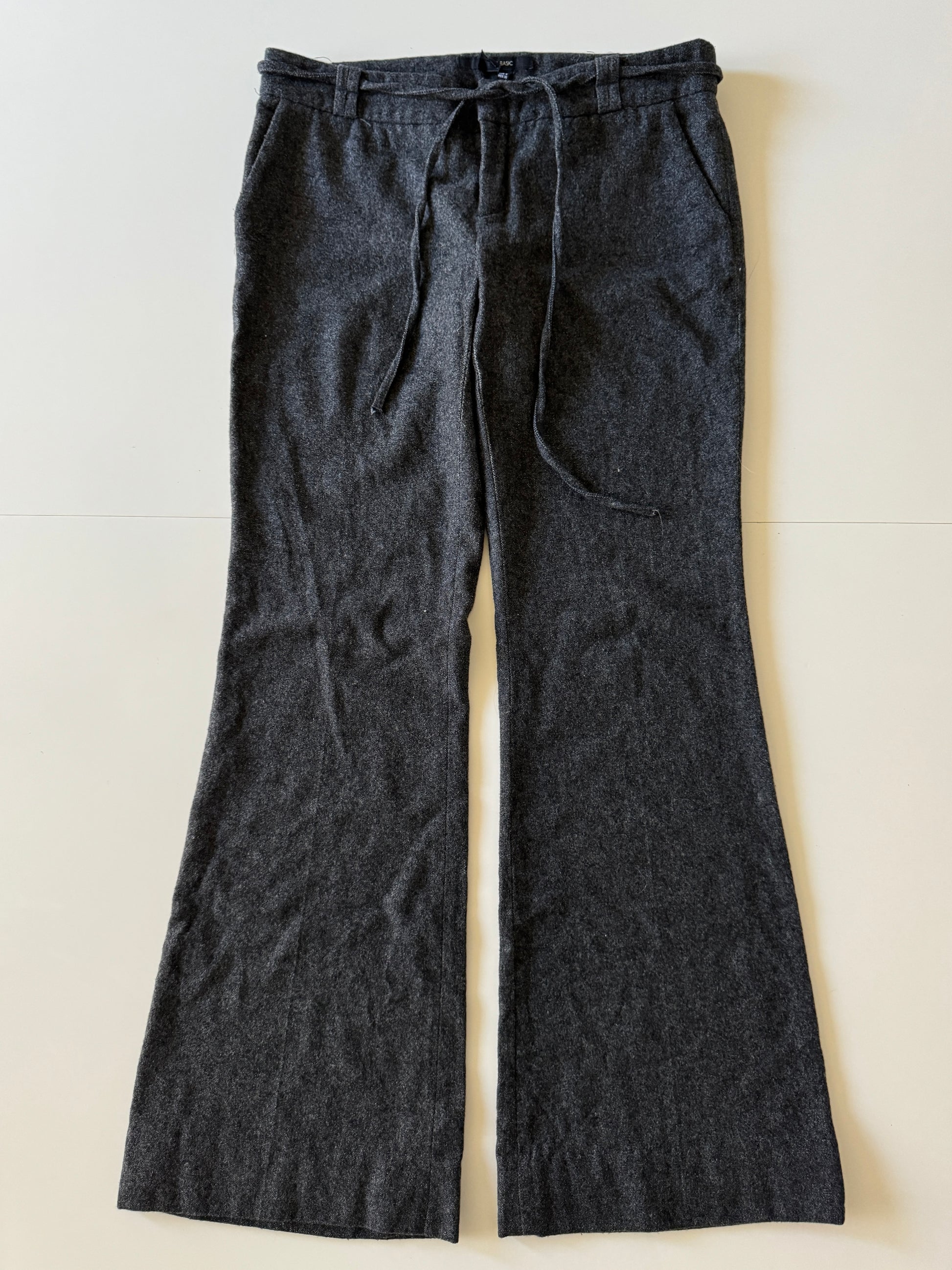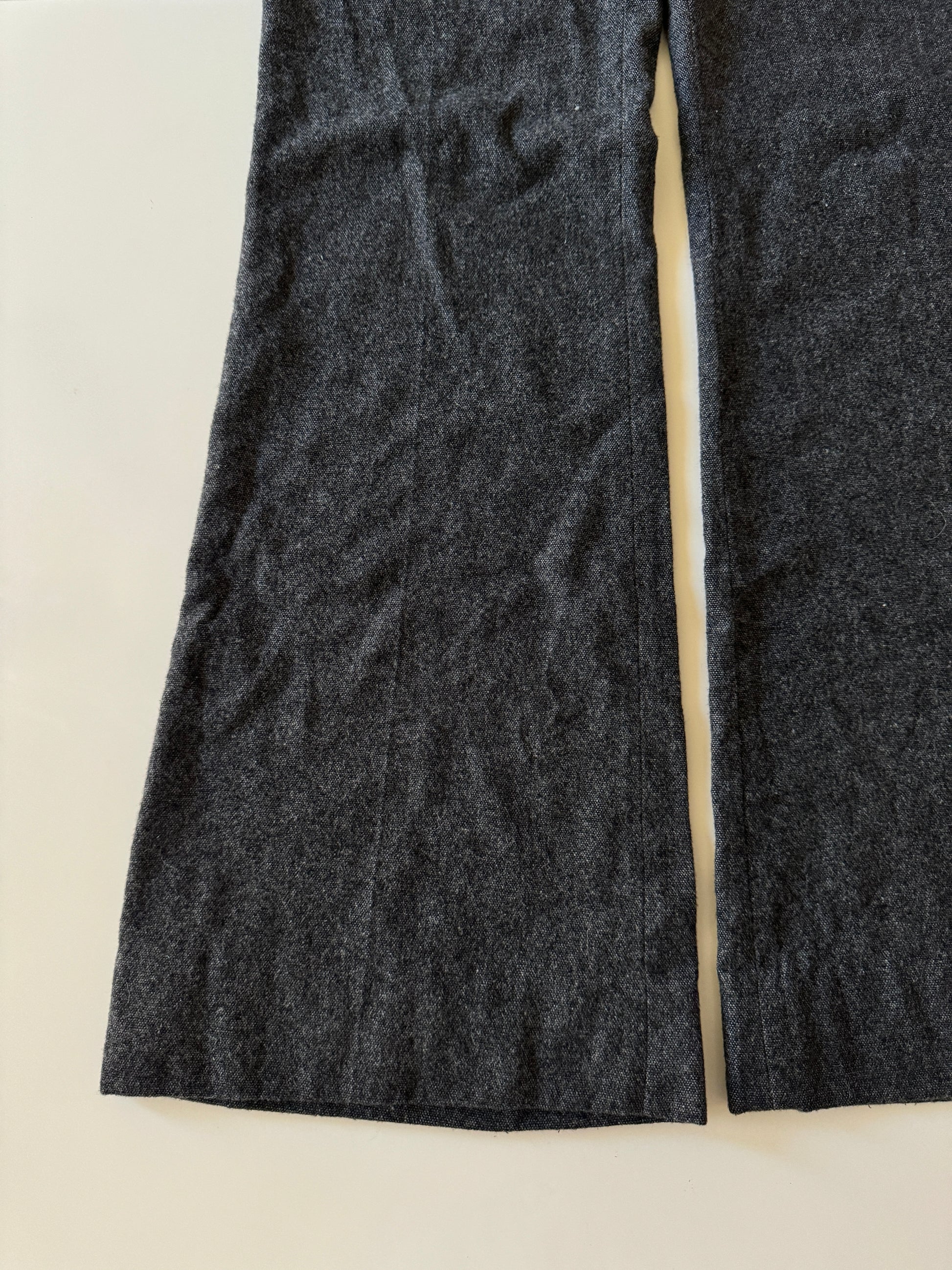 Pantalones grises de invierno, Tiro bajo, pernera acampanada.