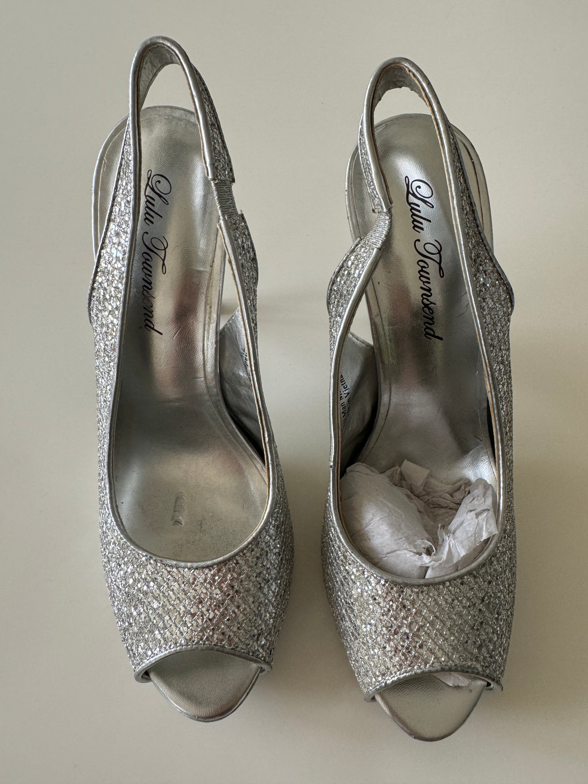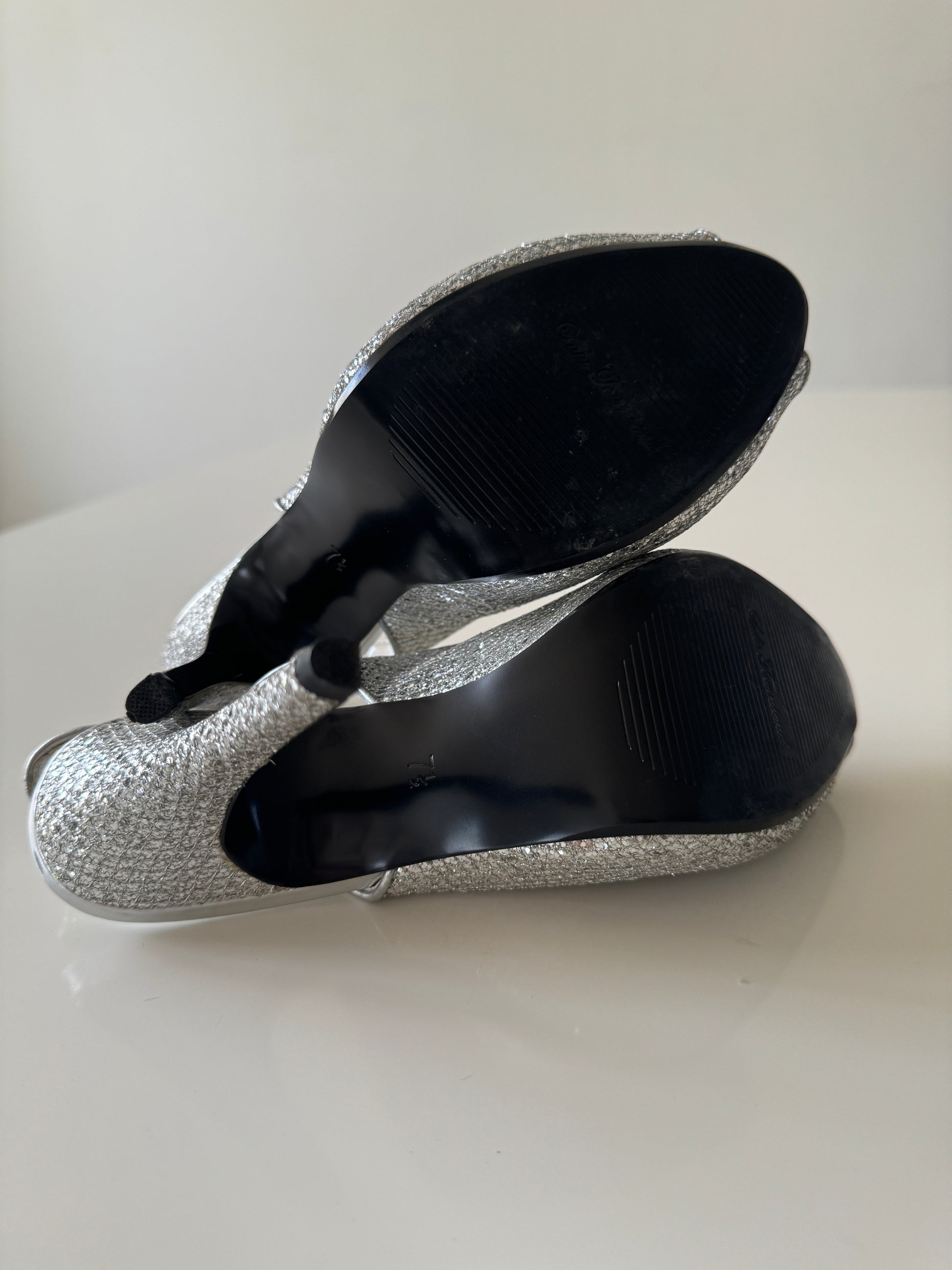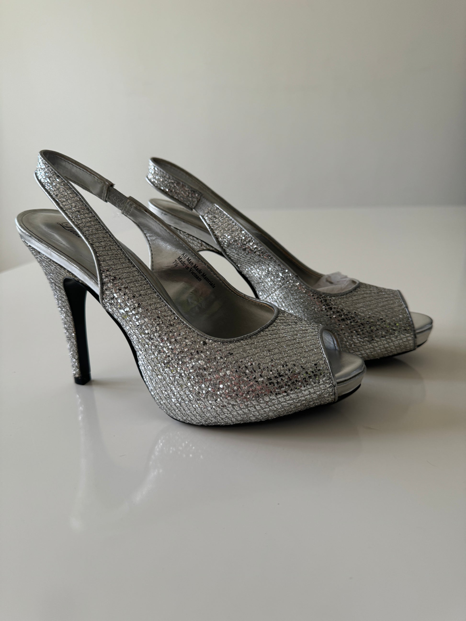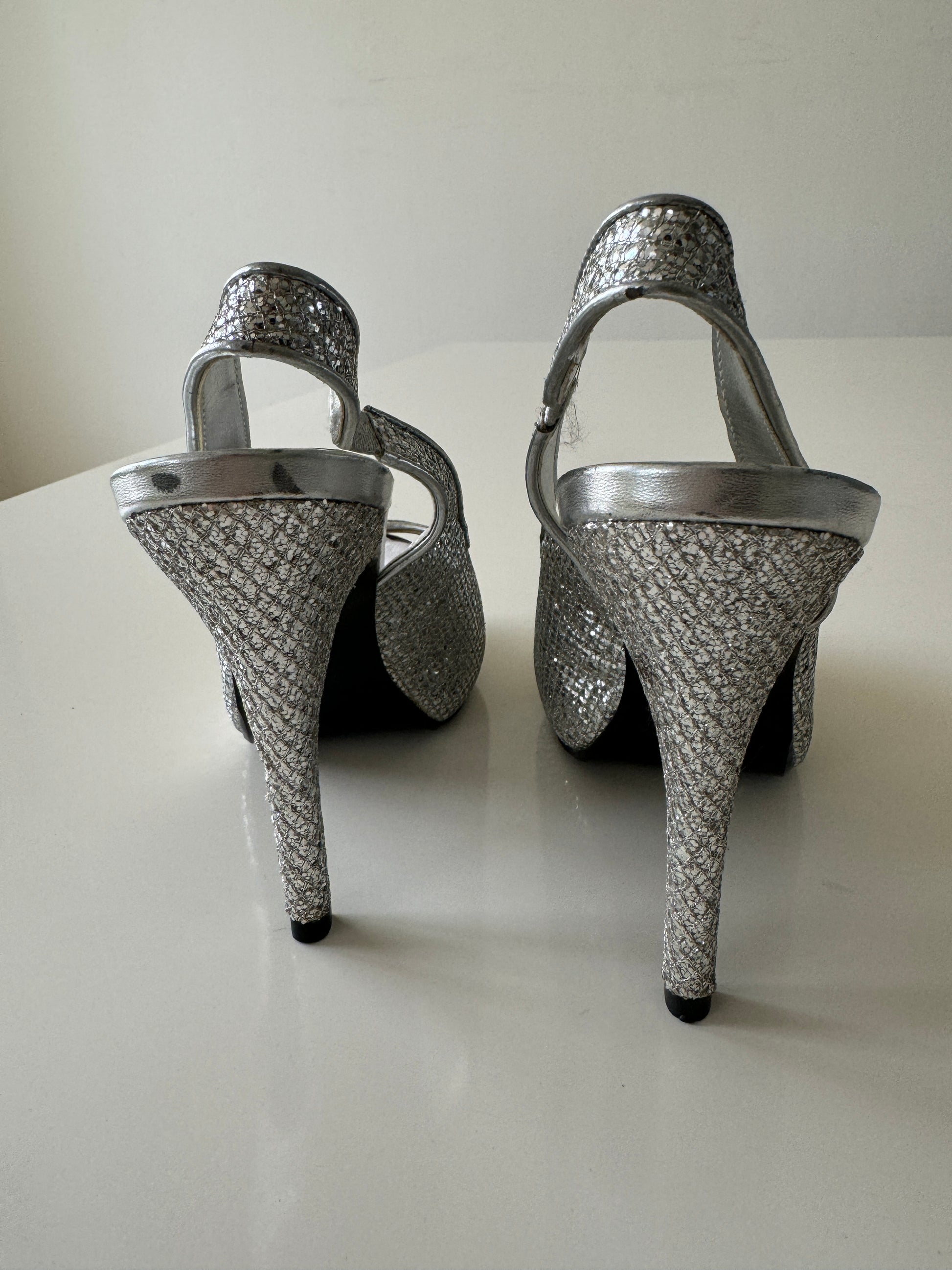 Peep toe plateados, Talla 7.5Usa, 4.5Mx, Mujer