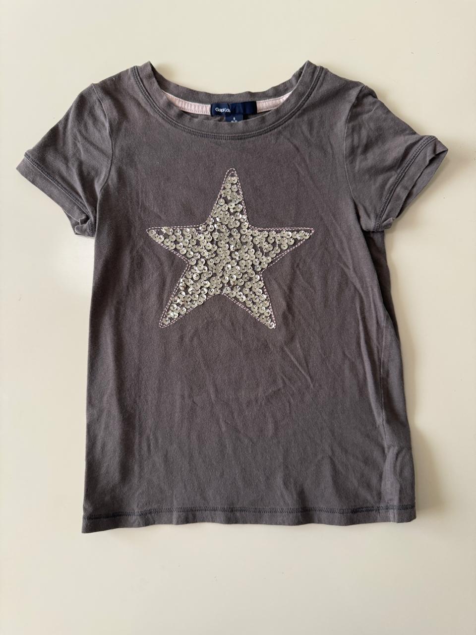 Playera gris con estrella de lentejuelas, Talla S, 6-7 años, Niña