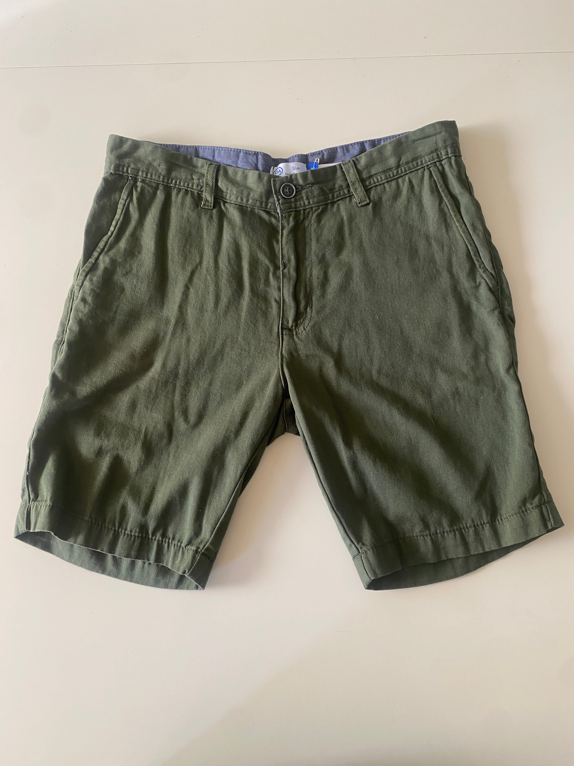 Shorts de vestir verdes, corte Slim, Talla 28, Hombre
