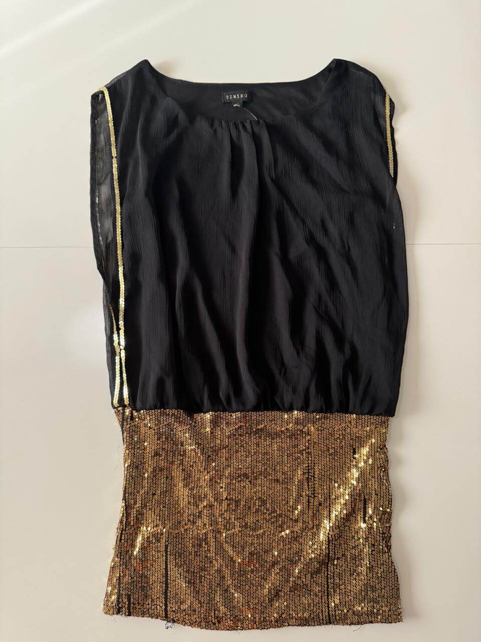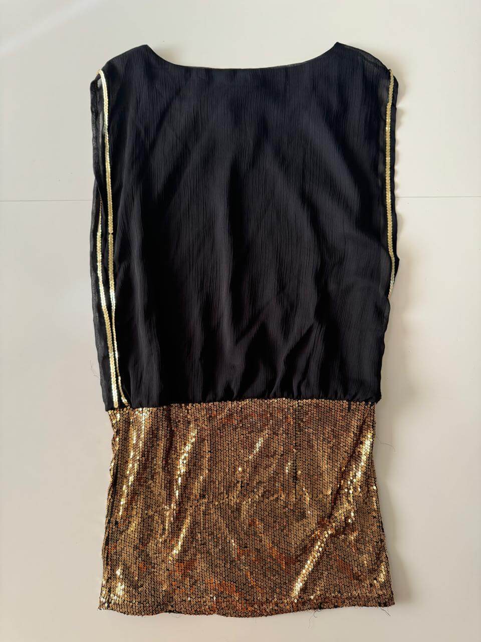 Vestido corto/Blusón con falda de lentejuelas, Talla L, Mujer