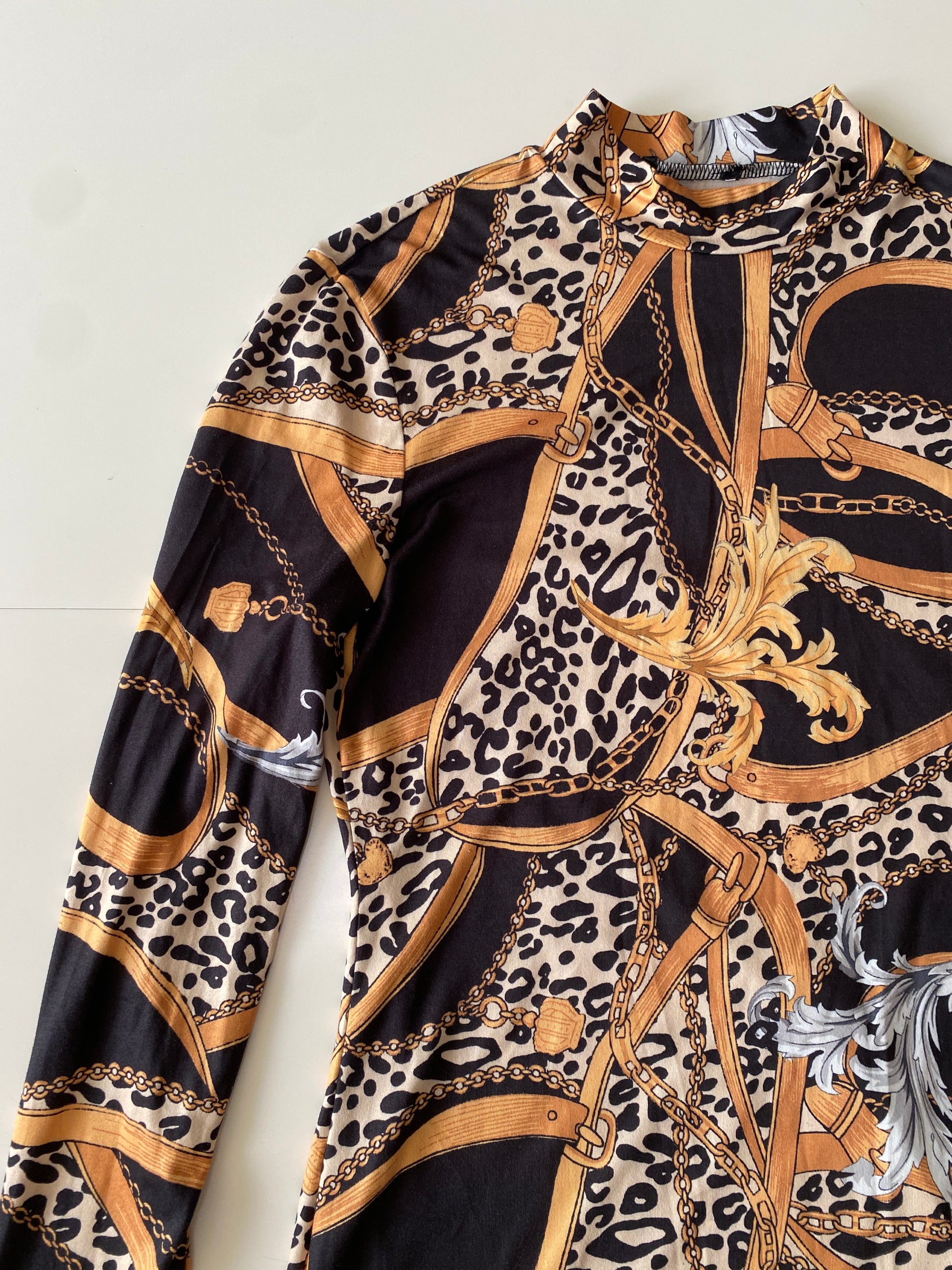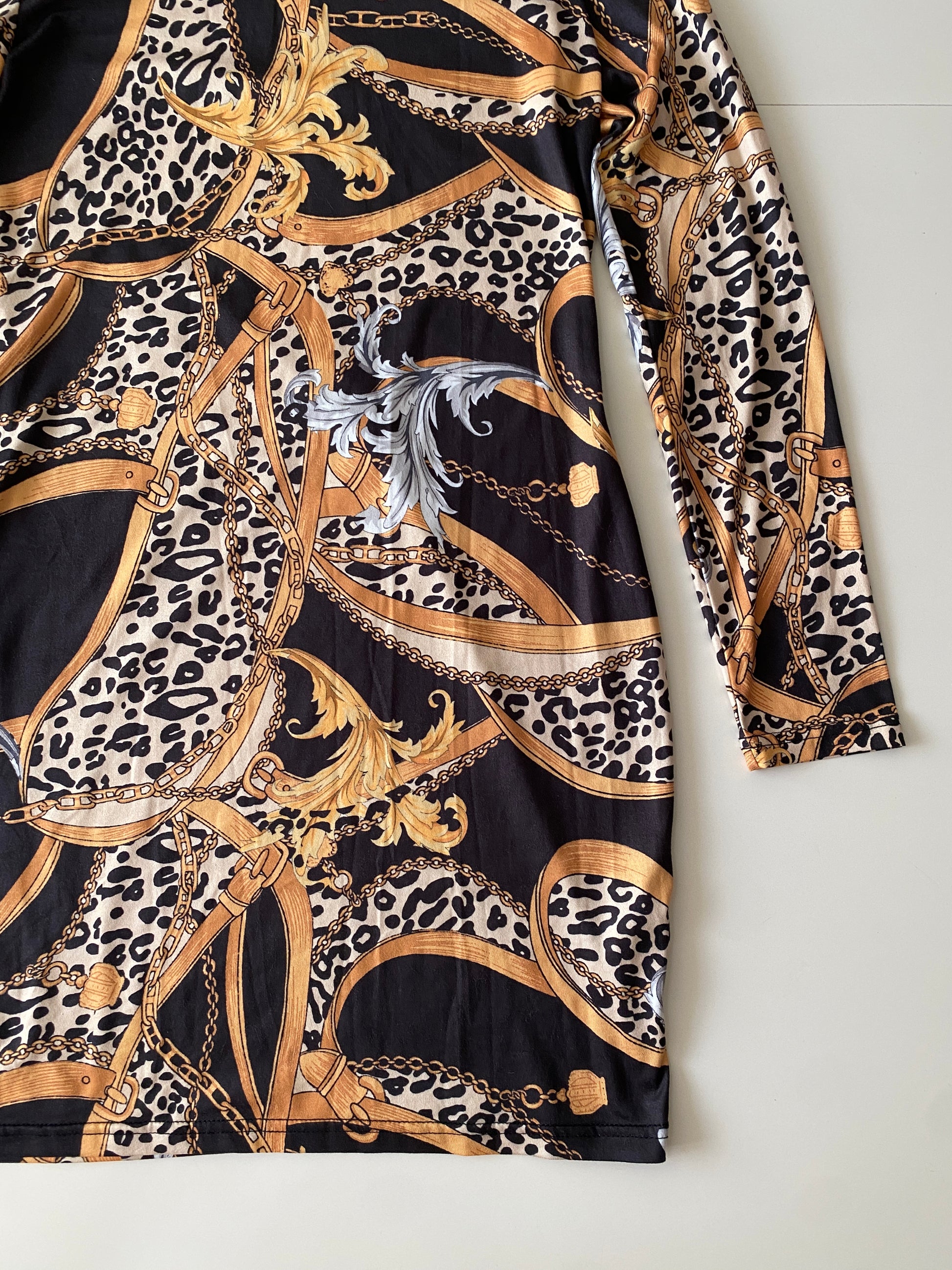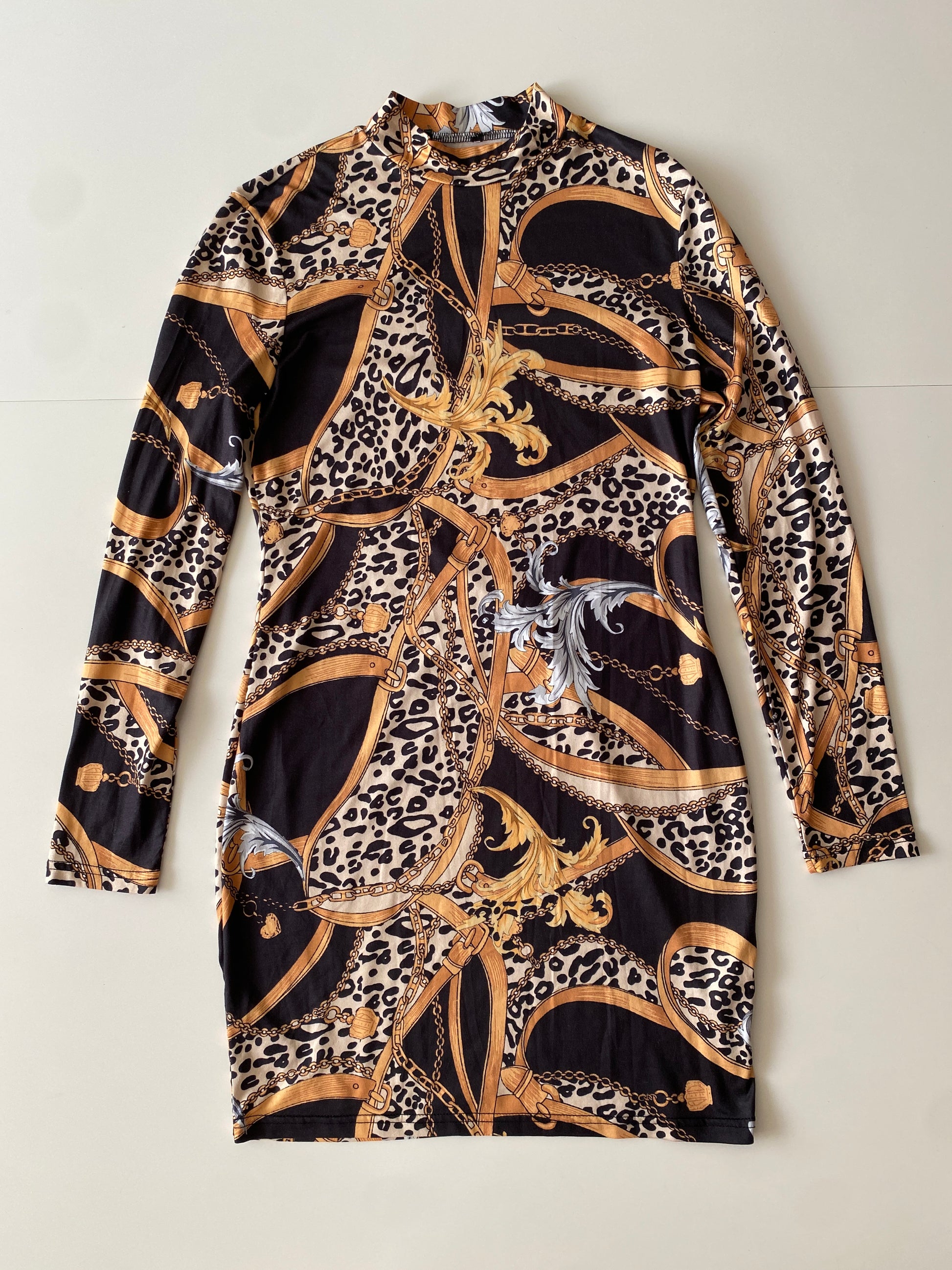 Vestido estampado negro, Talla M, Mujer