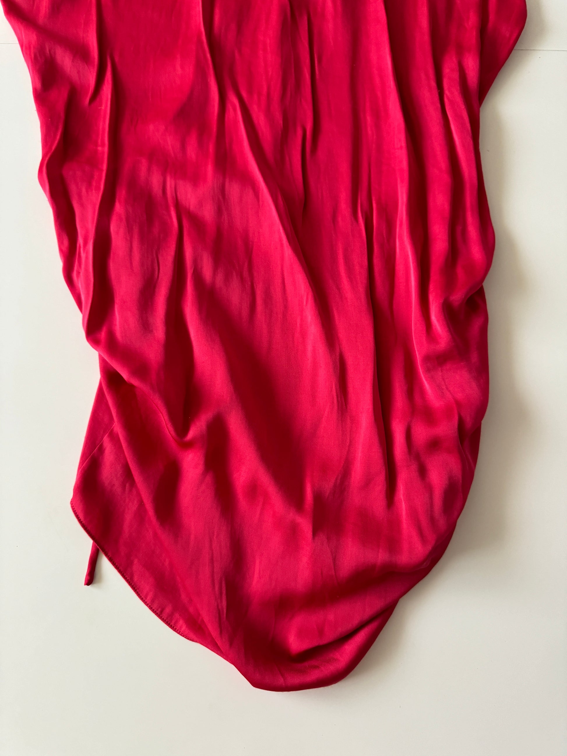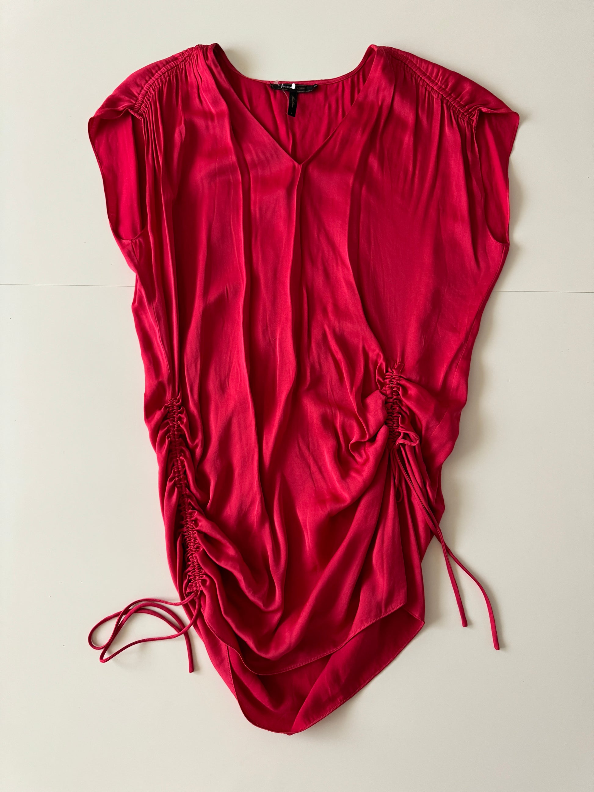 Vestido rojo corto con jaretas en costados, Talla S, Mujer