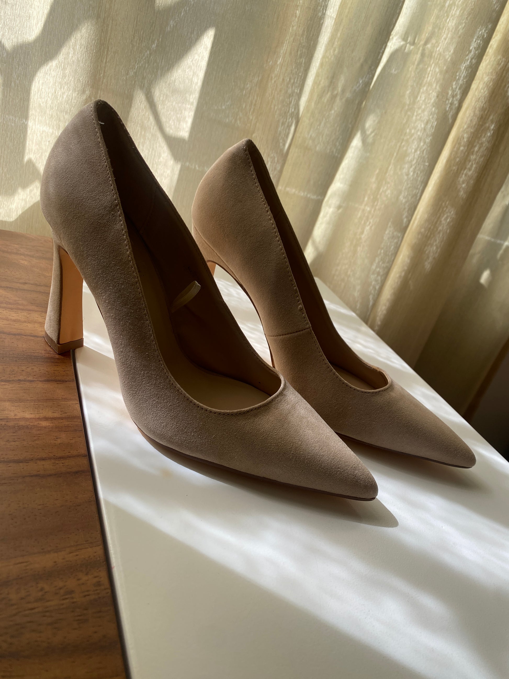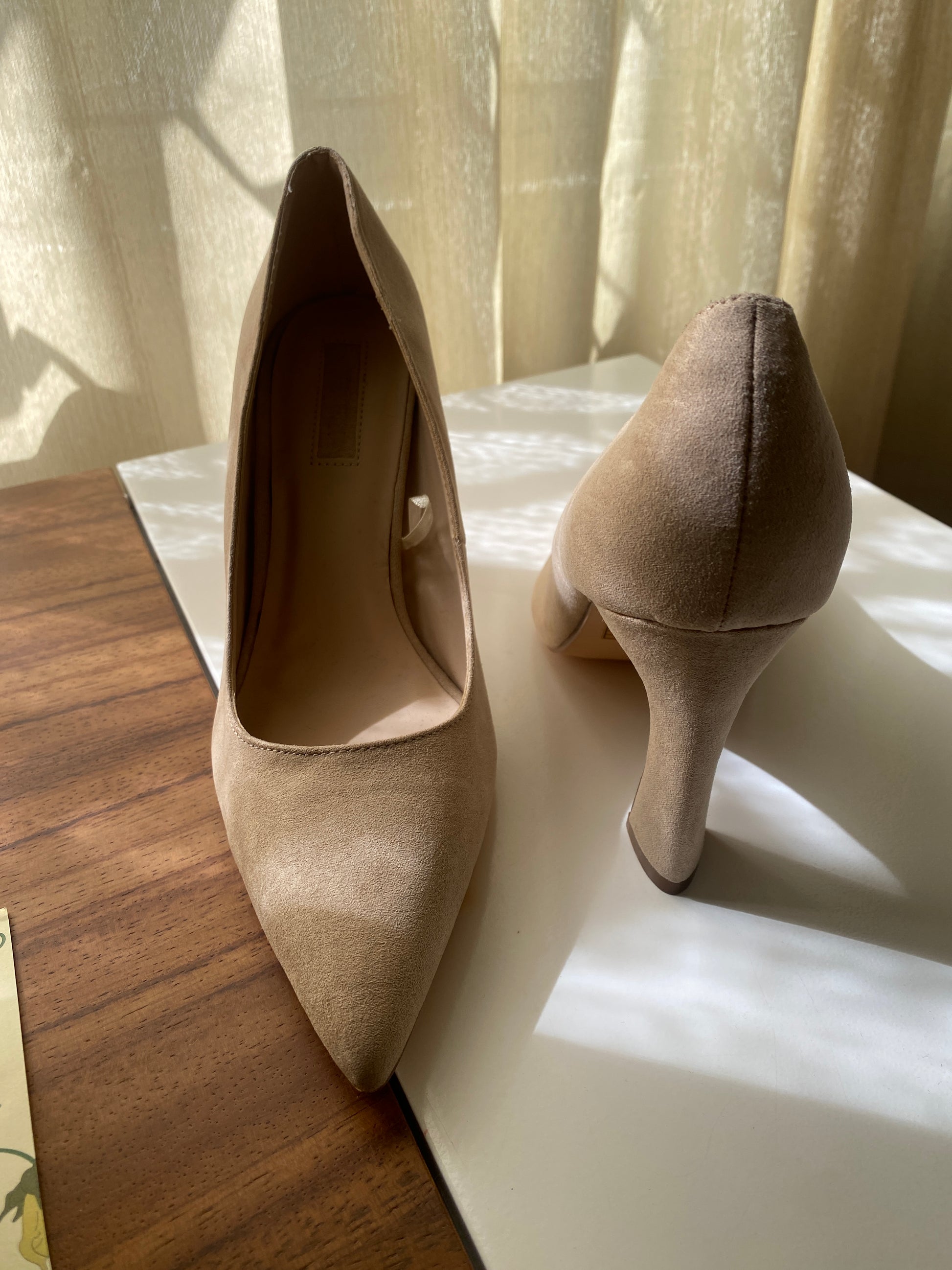 Zapatos de tacón beige, acabado suede